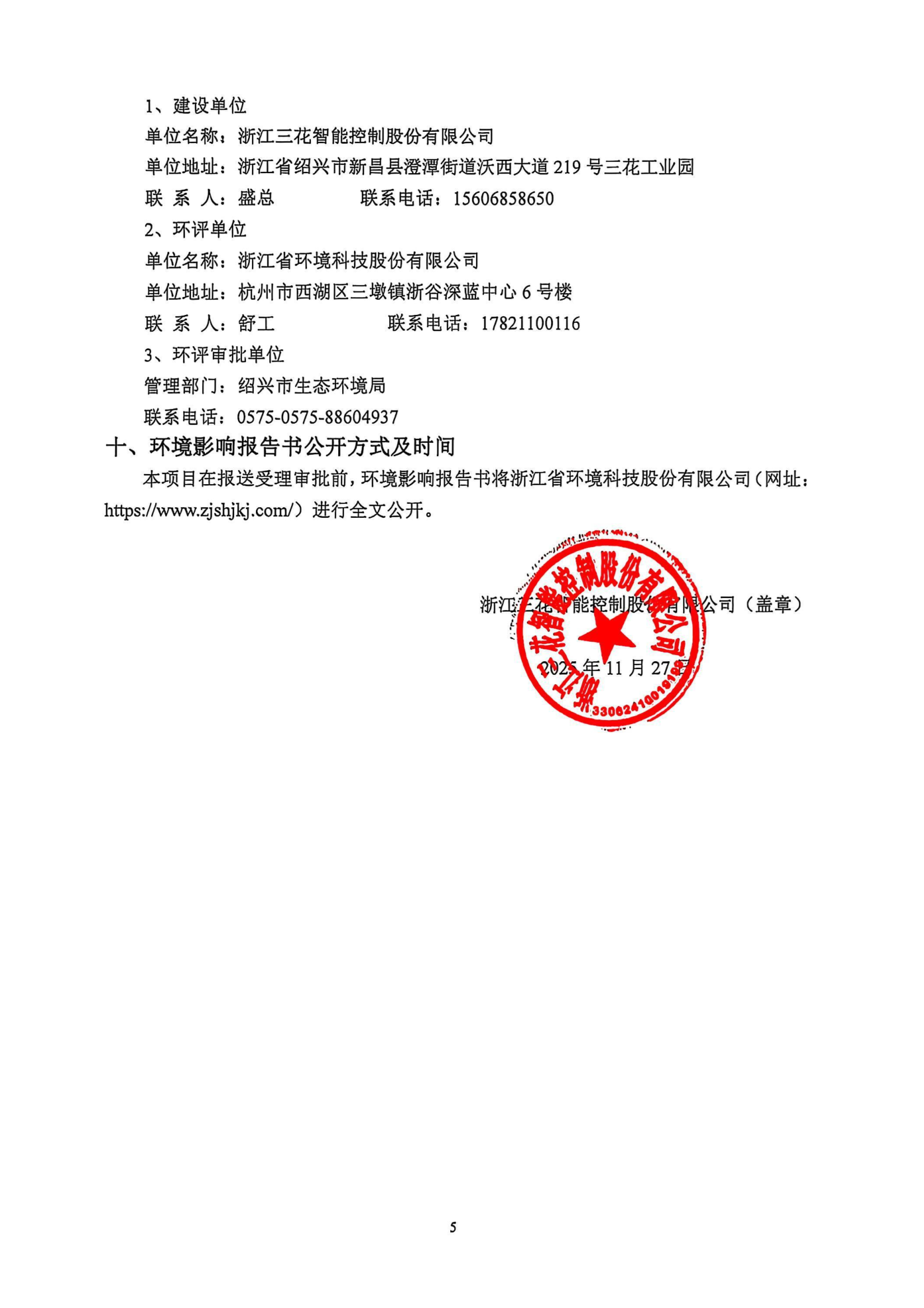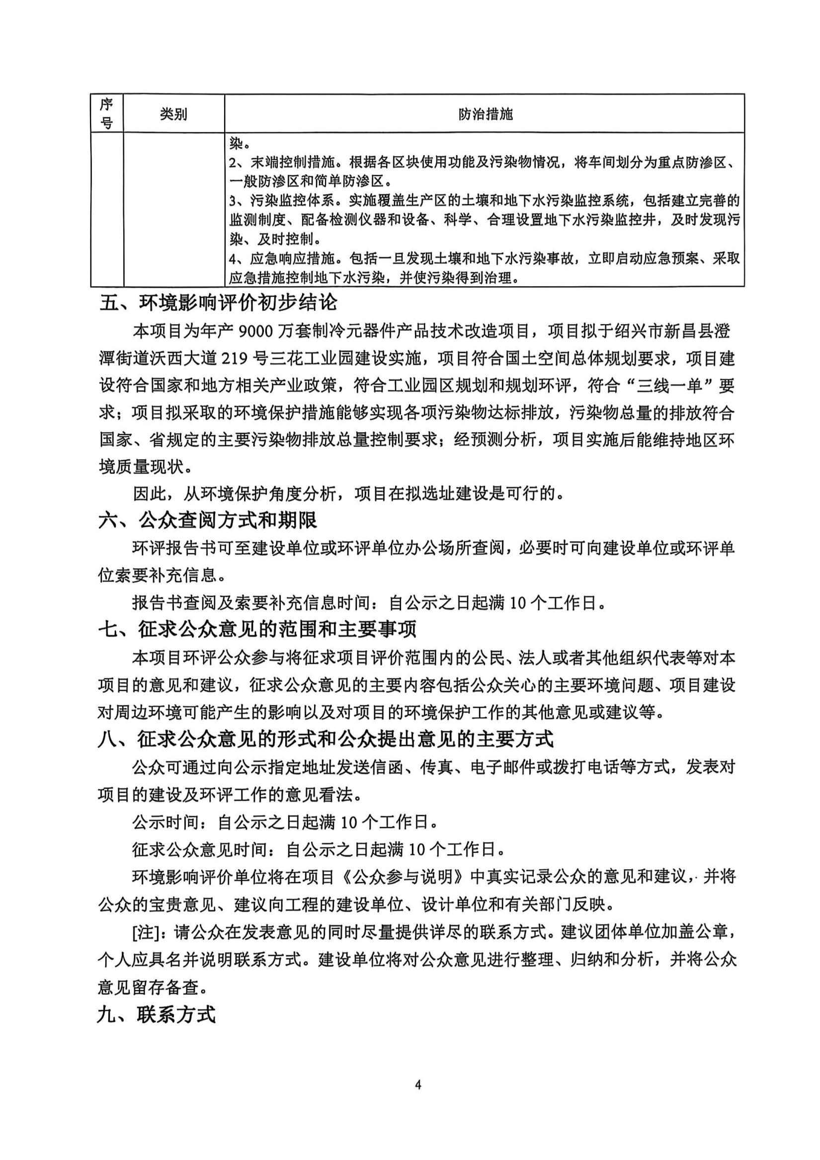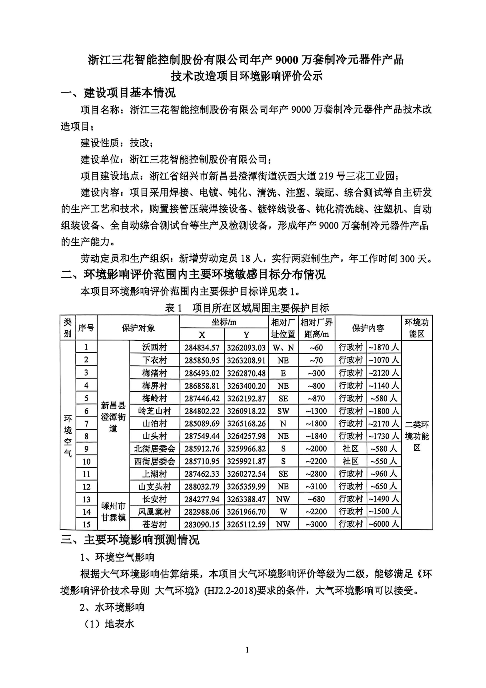 浙江三花智能控制股份有限公司年产9000万套制冷元器件产品技术改造项目环境影响评价公示